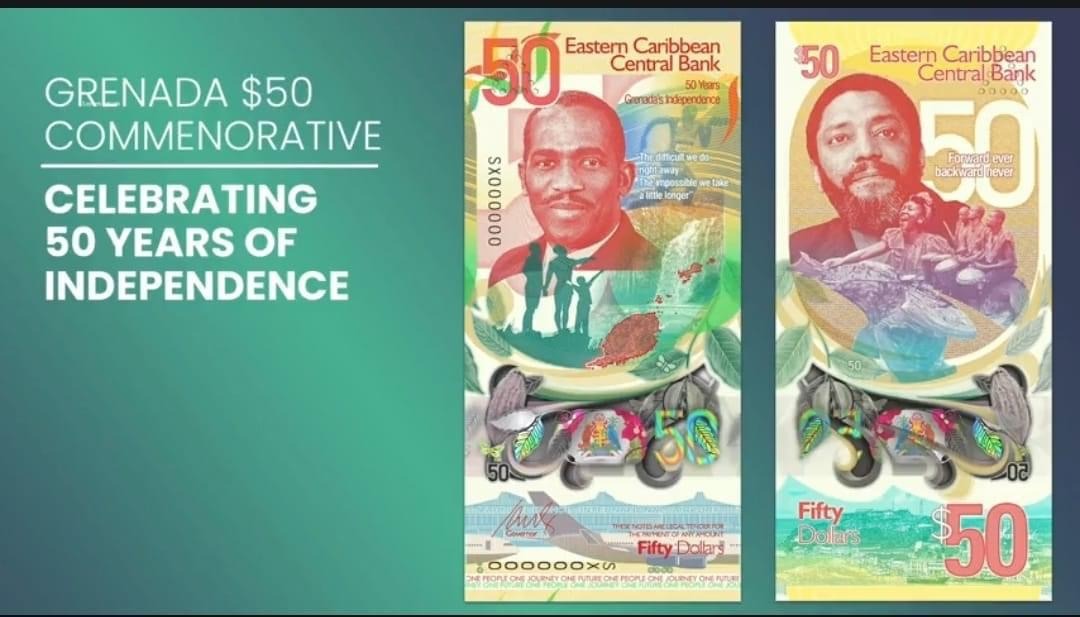 A new, 50-dollar commemorative banknote was unveiled on February 5, 2024 in St. George’s, Grenada by Dickon Amiss Thomas Mitchell, Prime Minister of Grenada, in the presence of Her Excellency, Dame Cécile La Grenade, the Governor-General of Grenada, Timothy Antoine, Governor of the Eastern Caribbean Central Bank, Olympian Kirani James, and other officials and dignitaries.