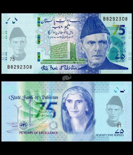 Pakistan 75 Rupees 2023 P-57 Commemorative UNC Bank Note
