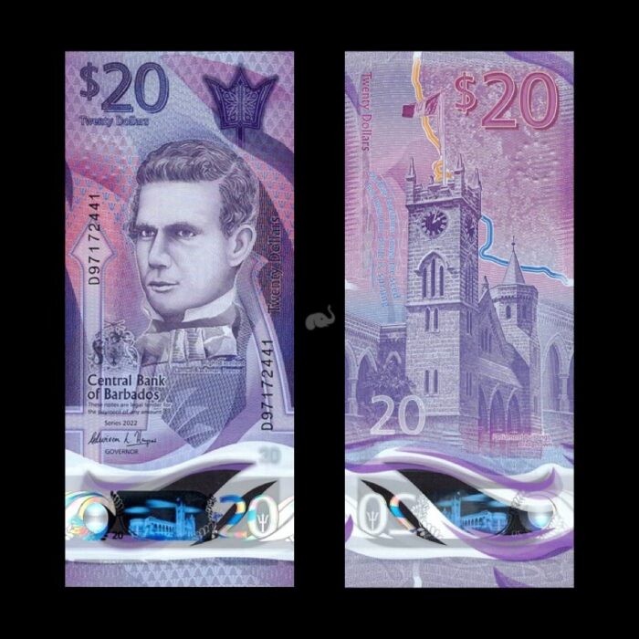 Barbados 20 Dollars 2022 P-W83 UNC Polymer Bank Note