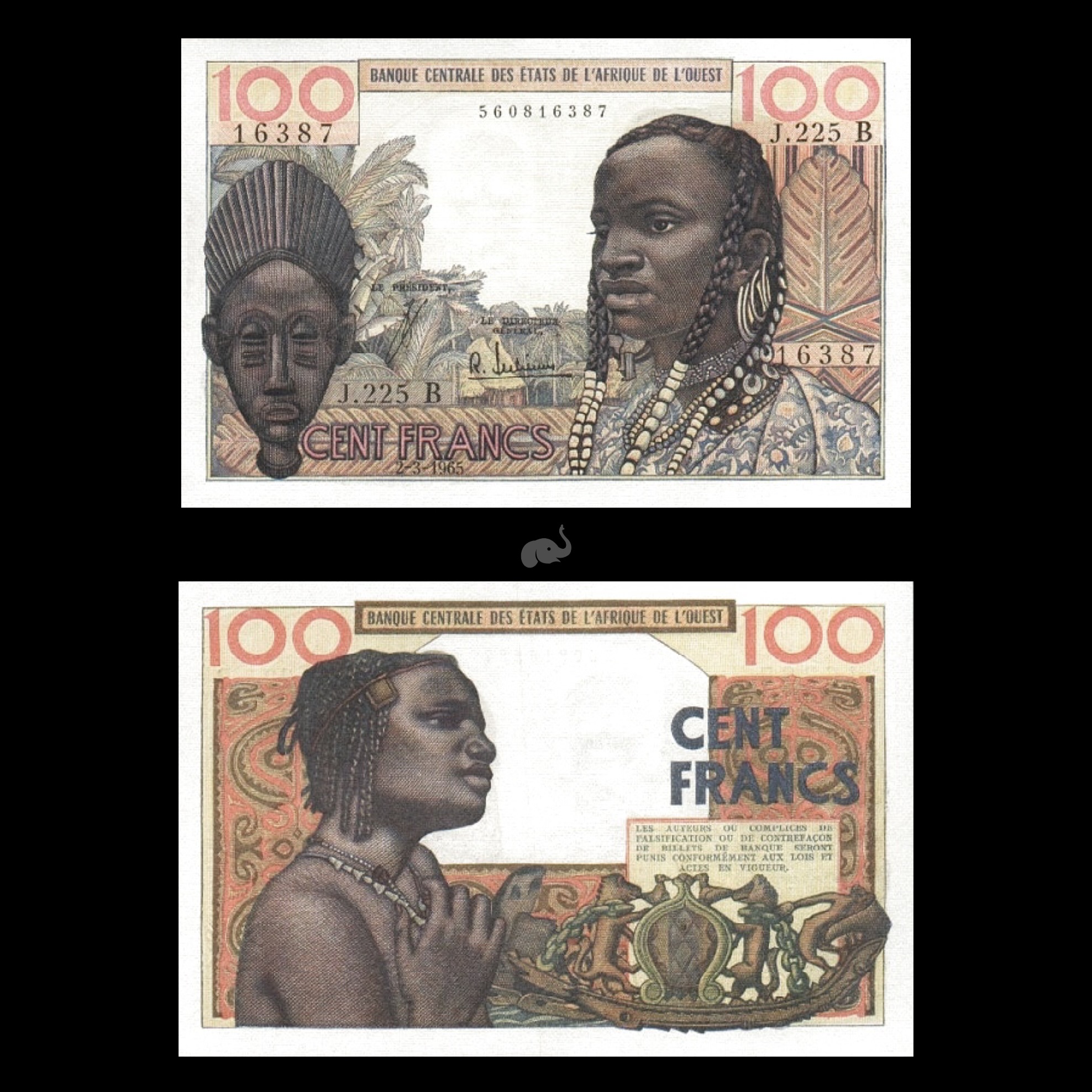 Benin 100 Francs 1965 P201Be UNC with slight stain