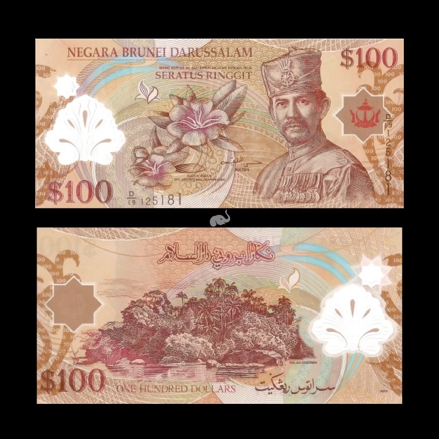 Brunei 100 Dollars 2013 P-29c UNC Polymer Bank Note