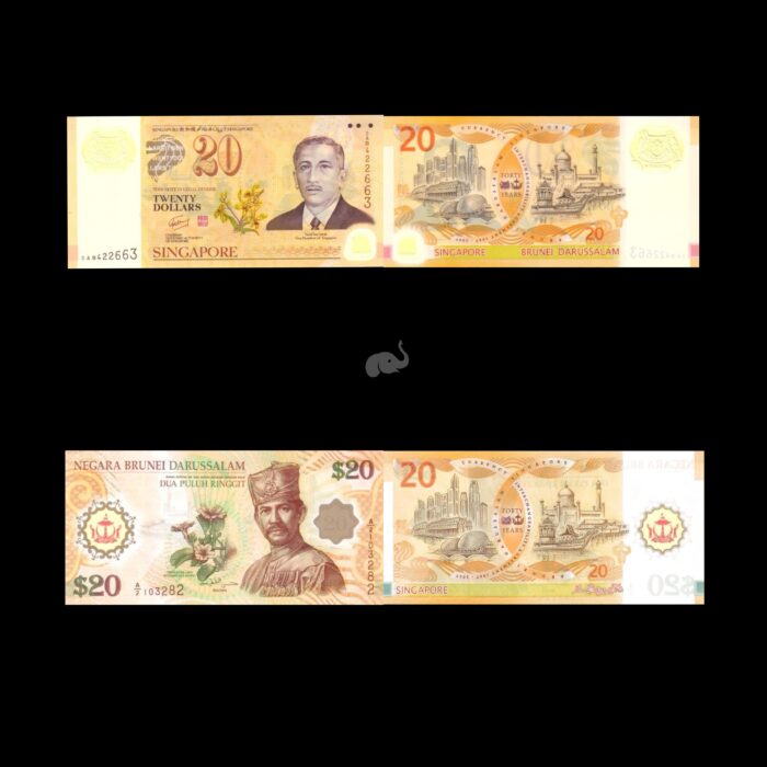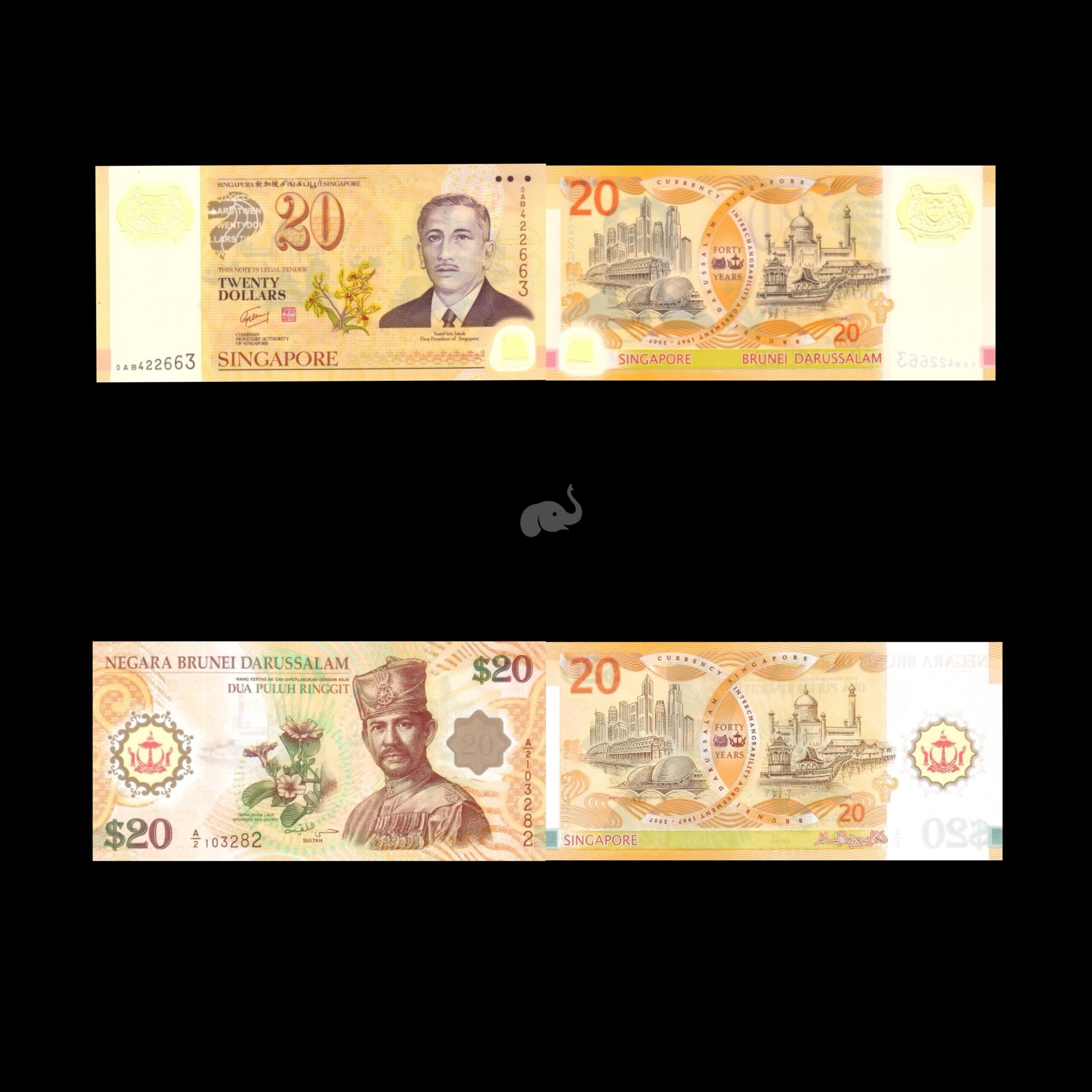 Brunei & Singapore Joint issue 20 Dollars Commemorative 2007 Polymer Banknotes UNC