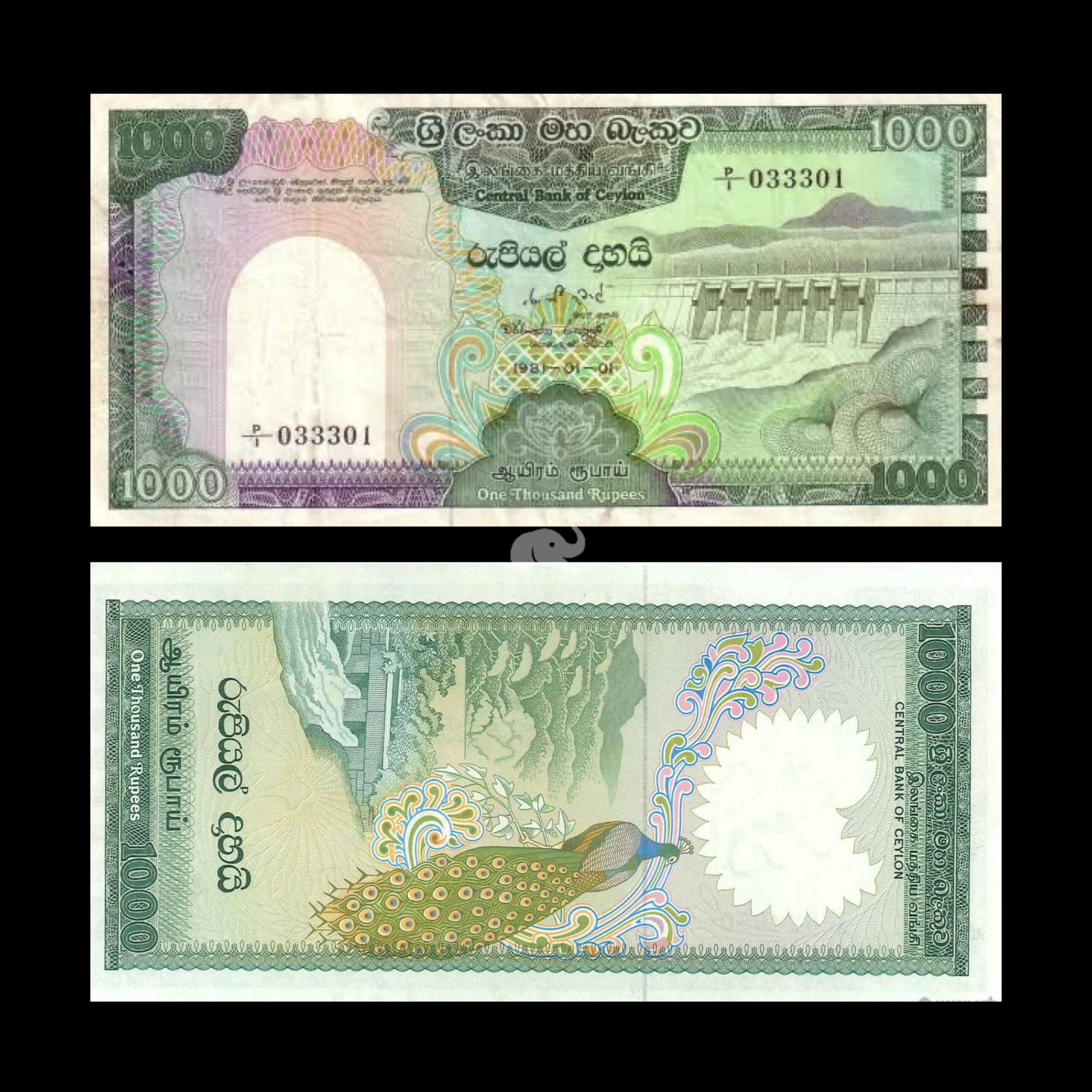 Ceylon 1000 Rupees 1981 P-90 Extreme Rare XF Fold
