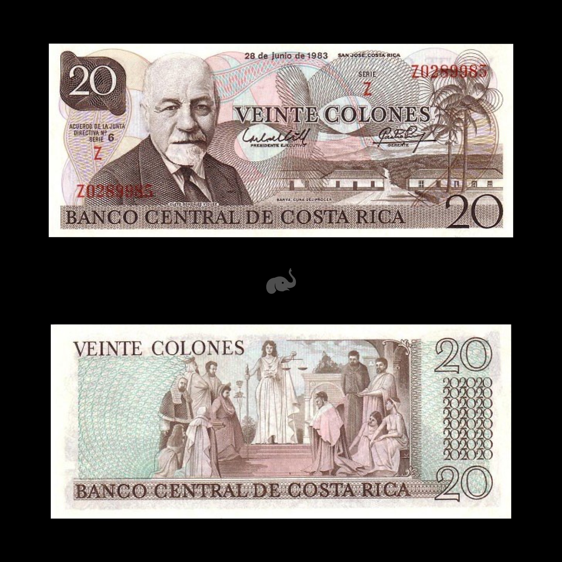Costa Rica 20 Colones 1983 P252 UNC Tyvek Polymer