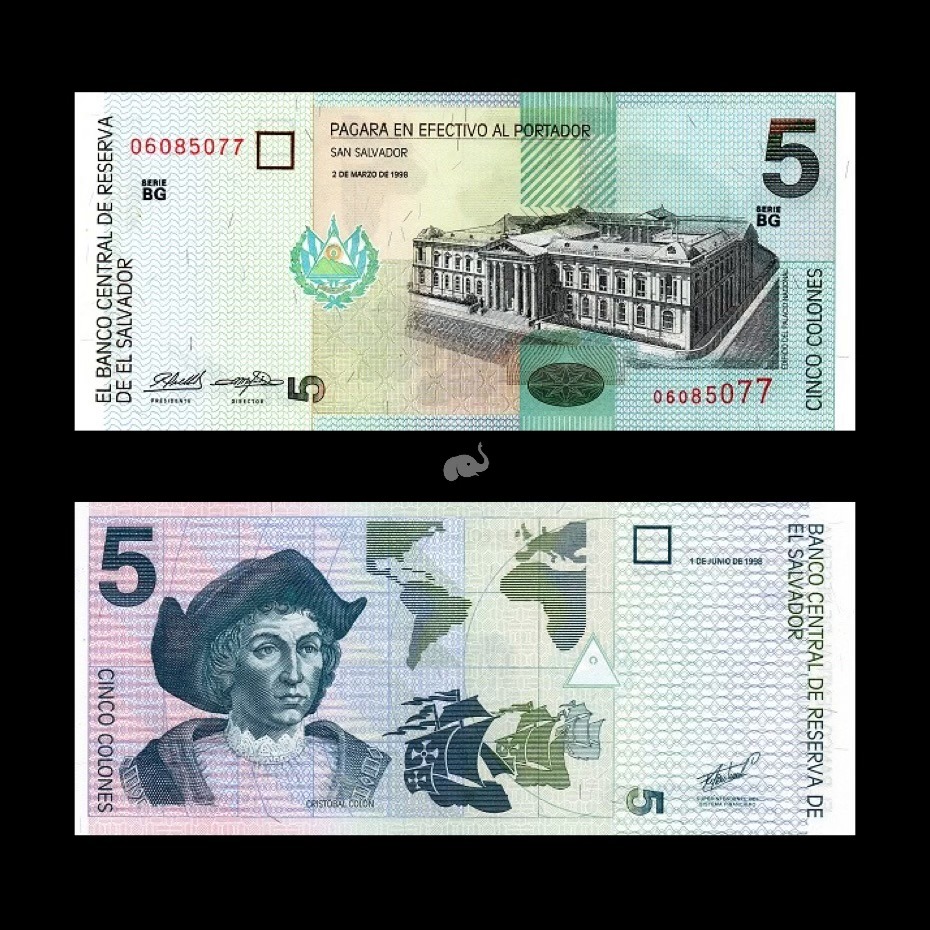 El Salvador 5 Colones 1998 P-147b(2) UNC Bank Note
