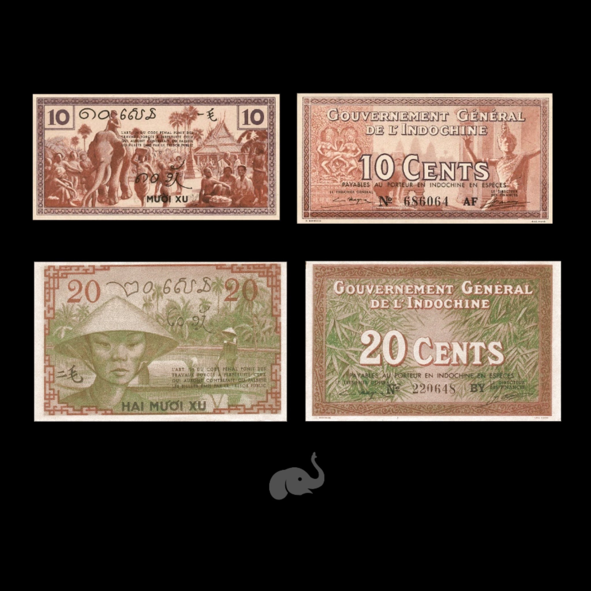 French indochina 10 – 20 cents 1939 Rare set of 2 XF