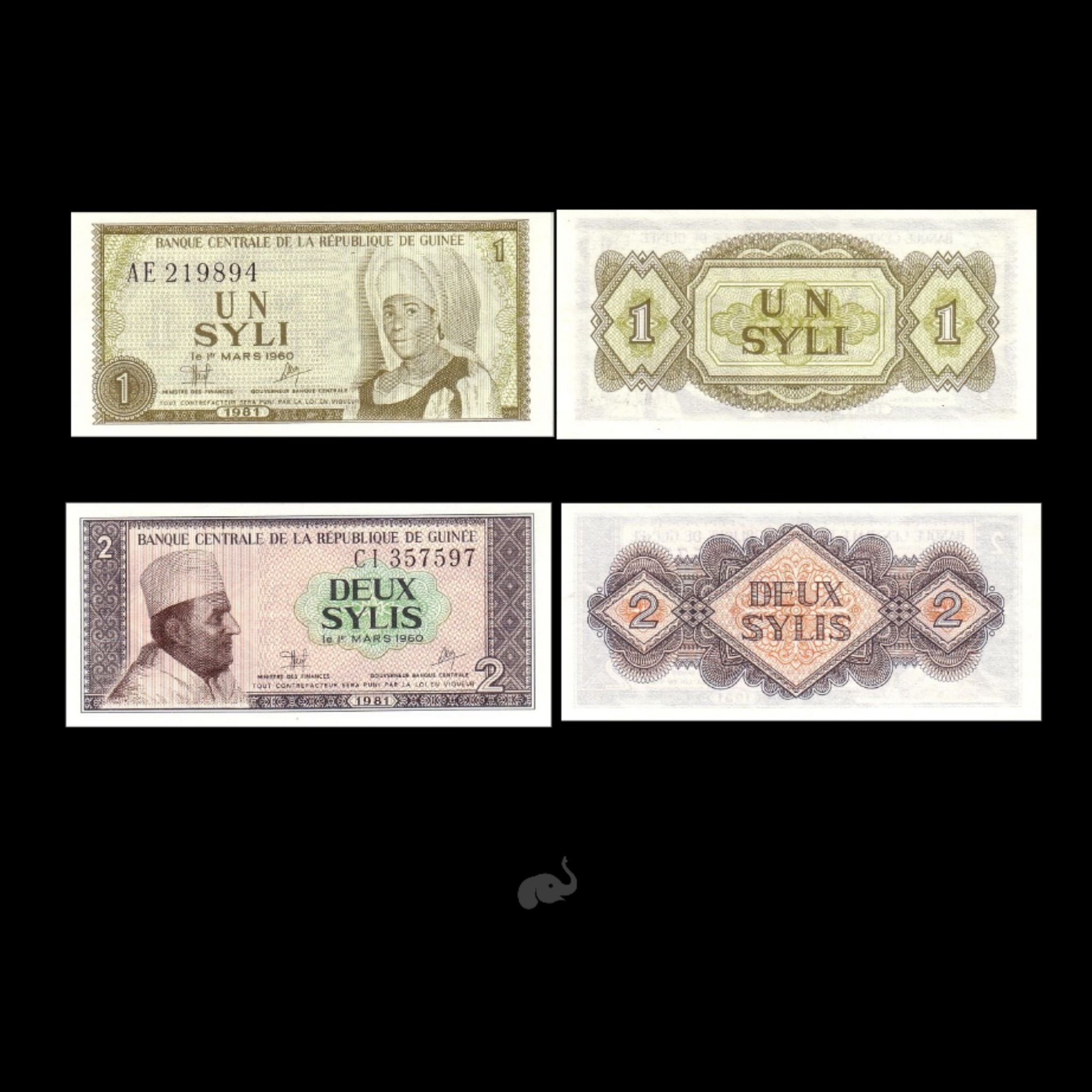 Guinea 1 & 2 Sylis 1981 Set of 2 UNC Notes