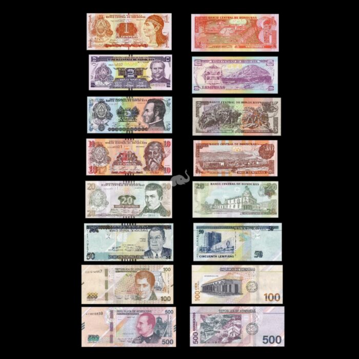 Honduras 1 – 500 Lempiras 2012-22 Set of 8 UNC Bank Notes