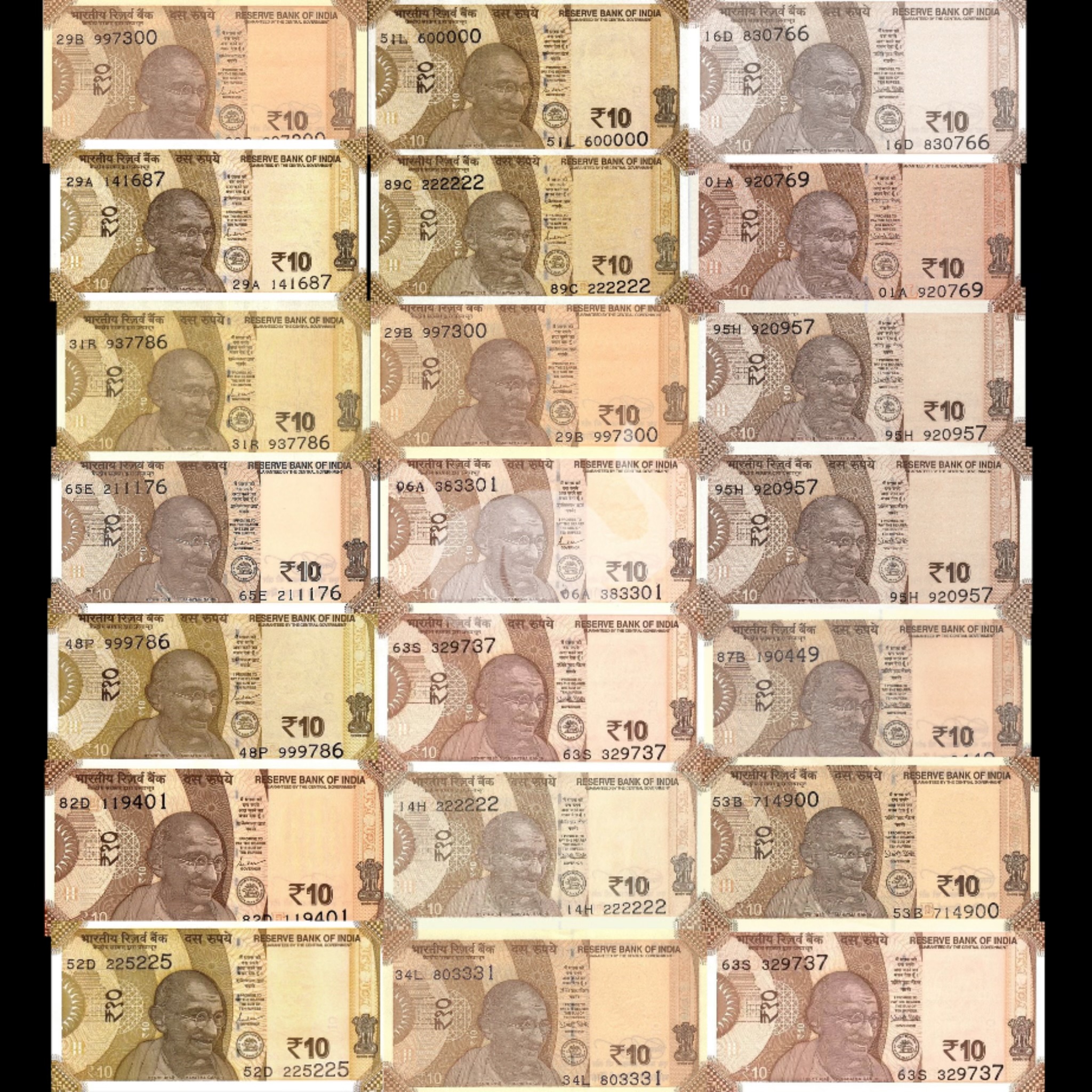 India 10 Rupees 2017-23 Signature Set of 20 UNC Bank Notes