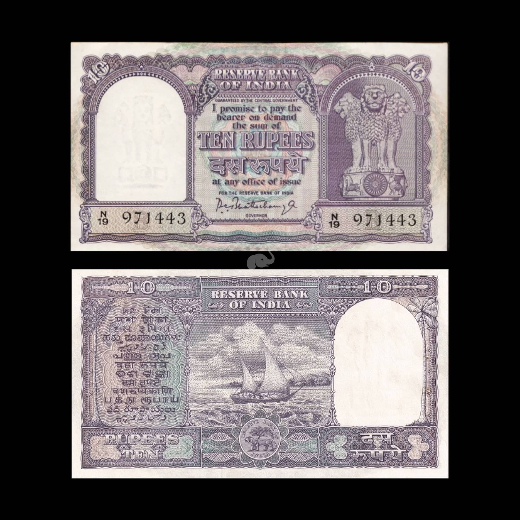 India 10 Rupees Bhattacharya 1962-67 P-40 B Inset UNC Bank Note