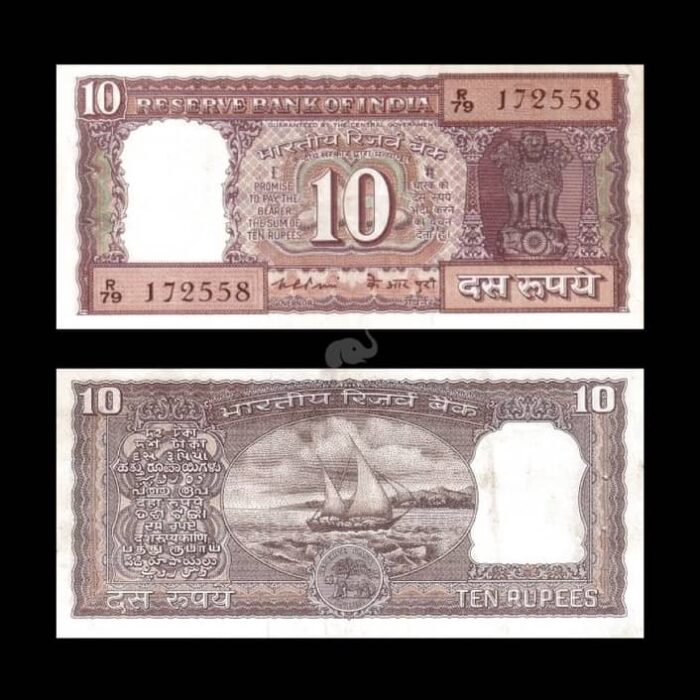 India 10 Rupees P-60c K. R. Puri (1975-1977) B Inset Boat UNC