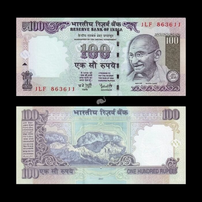 India 100 Rupees 2007 P-98i Y V Reddy No Inset UNC Bank Note