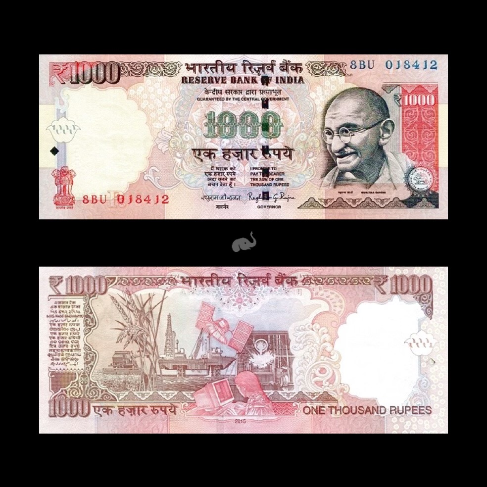 India 1000 Rupees 2015 P-107n Raghuram G Rajan R Inset UNC Bank Note
