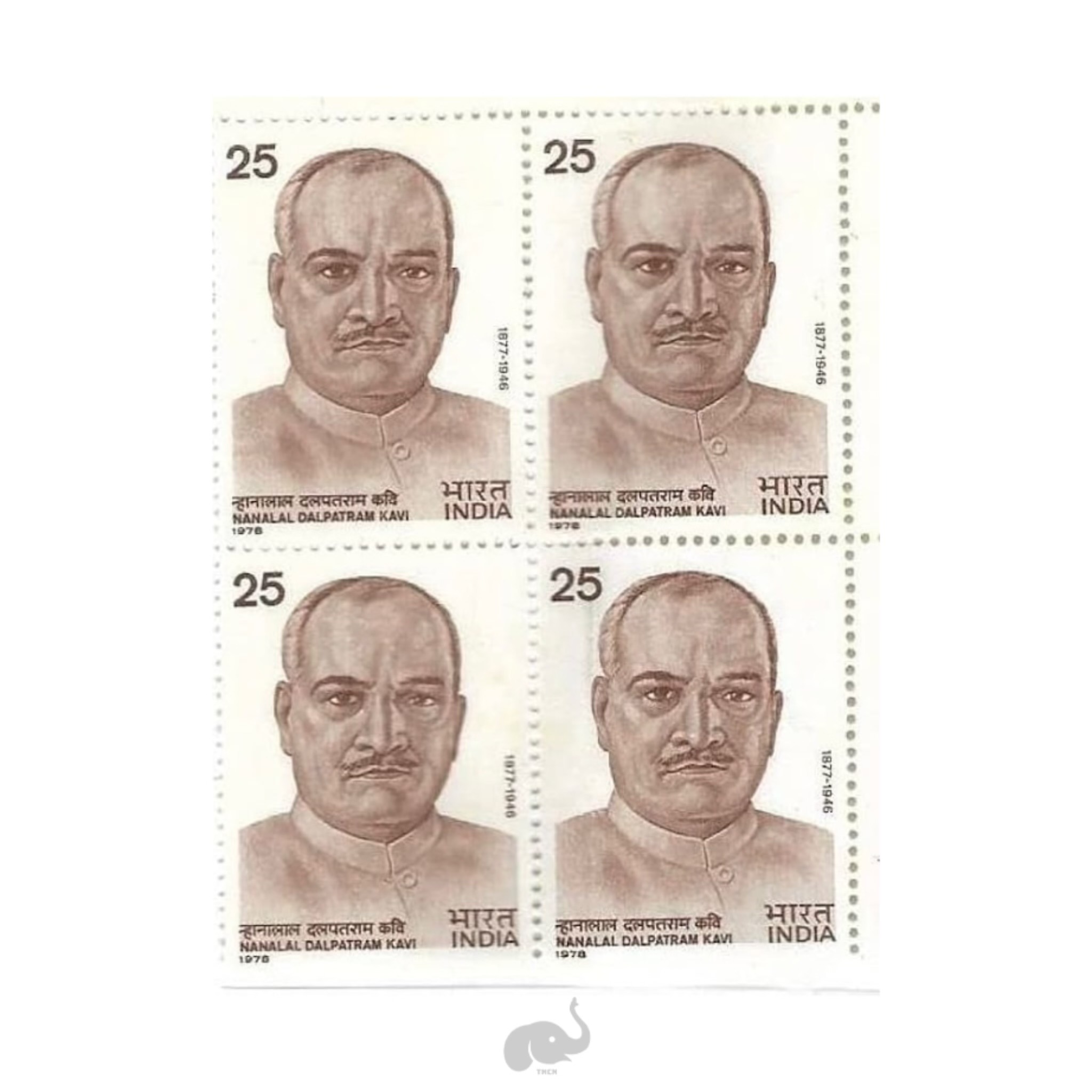 India 1978 Nanalal Dalpatram Kavi Corner Block 4 Stamps MNH