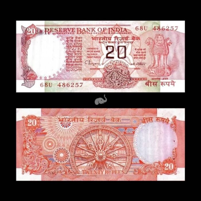 India 20 Rupees 1970-2002 P-82i C. Rangarajan B Inset UNC Bank Note