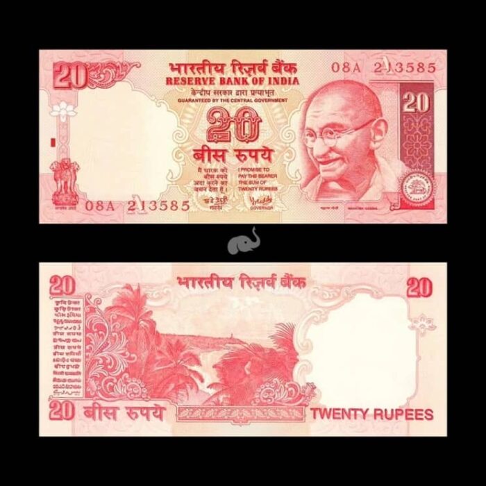 India 20 Rupees 1996-2006 P-89ae YV reddy A Inset UNC Bank Note