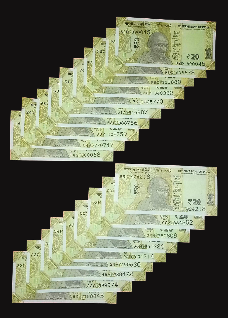 India 20 Rupees 2019-23 Set of 19 UNC Signature set Bank Note