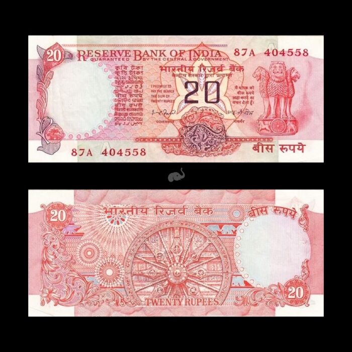 India 20 Rupee 1970-85 IG Patel P-82d UNC Bank Note