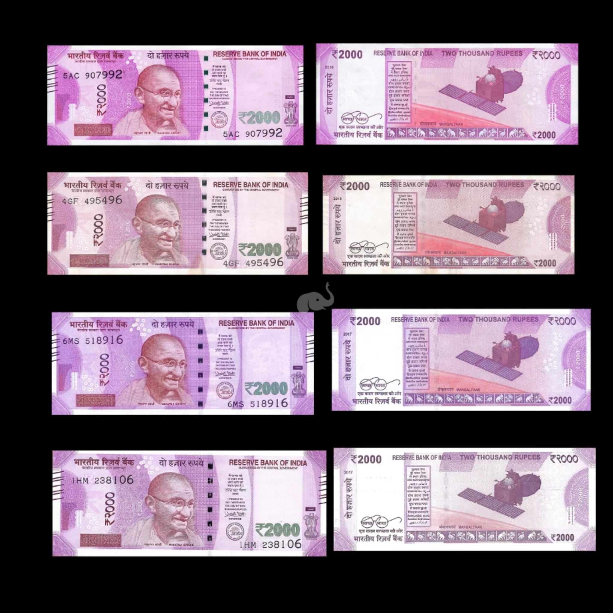 India 2000 Rupees 2017-18 Signature set of 4 UNC Bank Notes