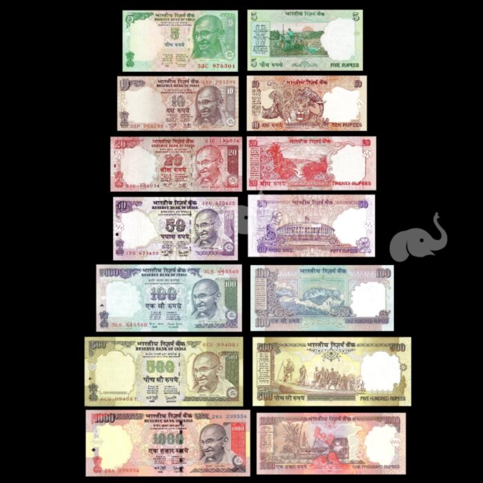 India 5 – 1000 Rupees 2005-15 Set of 7 UNC