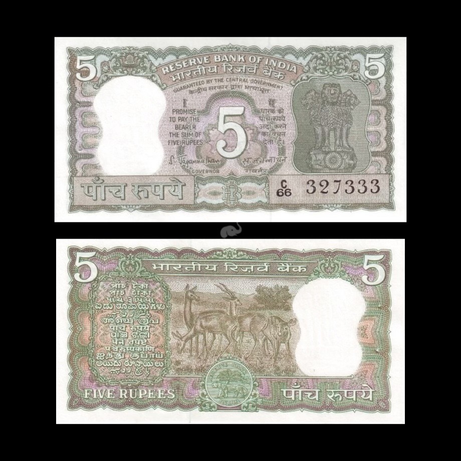 India 5 Rupees 1970 P-56b A Inset UNC Bank Note