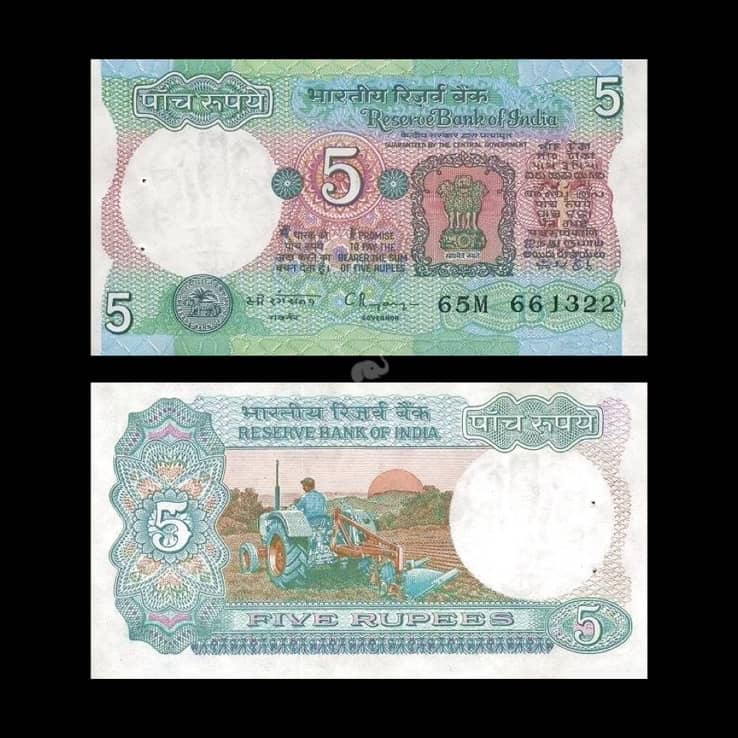 India 5 Rupees 1975-2002 C. Rangarajan B Inset P-80r UNC