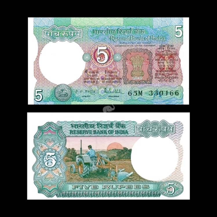 India 5 Rupees 1975-2002 Malhotra A Inset P-80P UNC