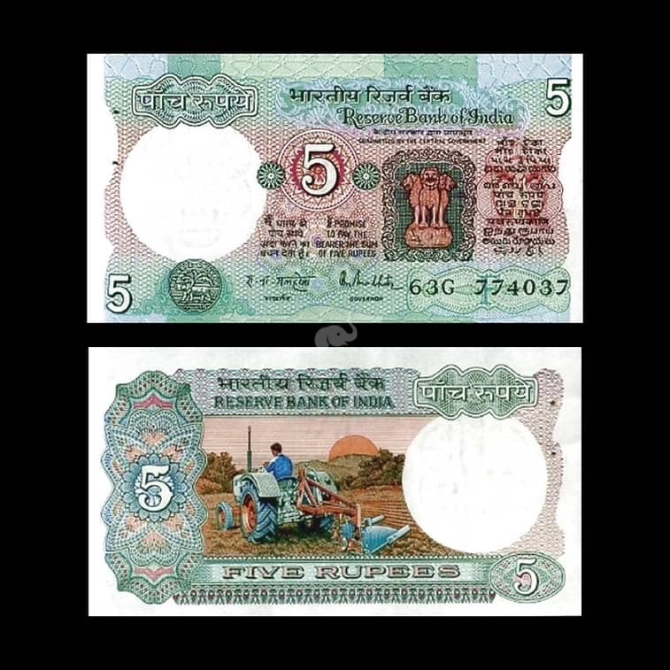 India 5 Rupees 1975-2002 Malhotra F Inset P-80m UNC