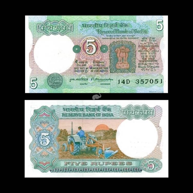 India 5 Rupees 1975-86 Narasimham A Inset P-80d UNC