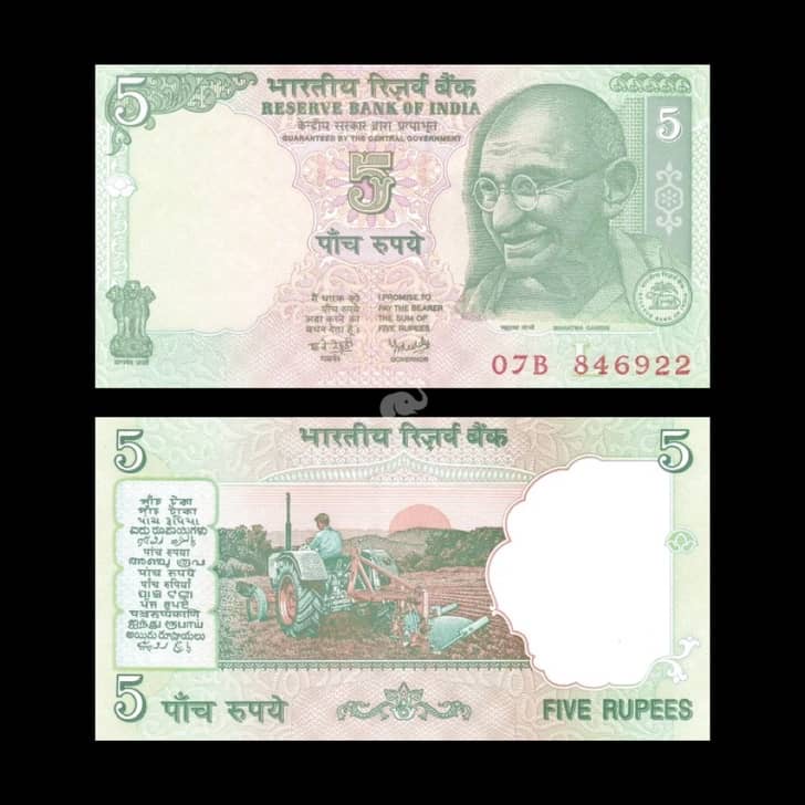 India 5 Rupees 2002-08 Y V Reddy P-88Ae L Inset UNC
