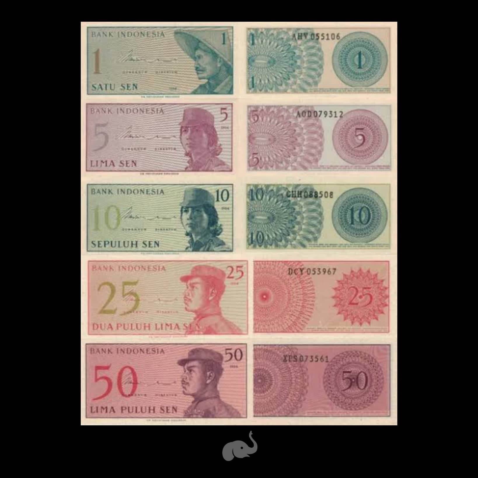 Indonesia 1 – 50 Sen 1964 Set of 5 UNC Bank Notes