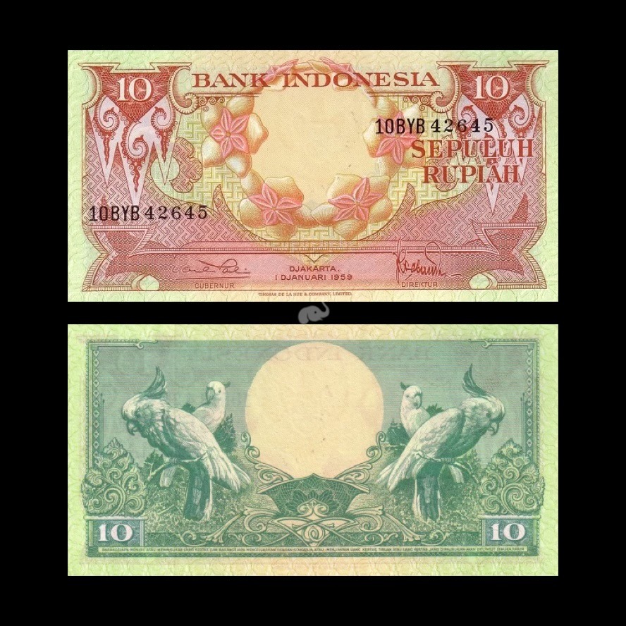 Indonesia 10 Rupaih 1959 P-66 Parrot UNC Bank Note