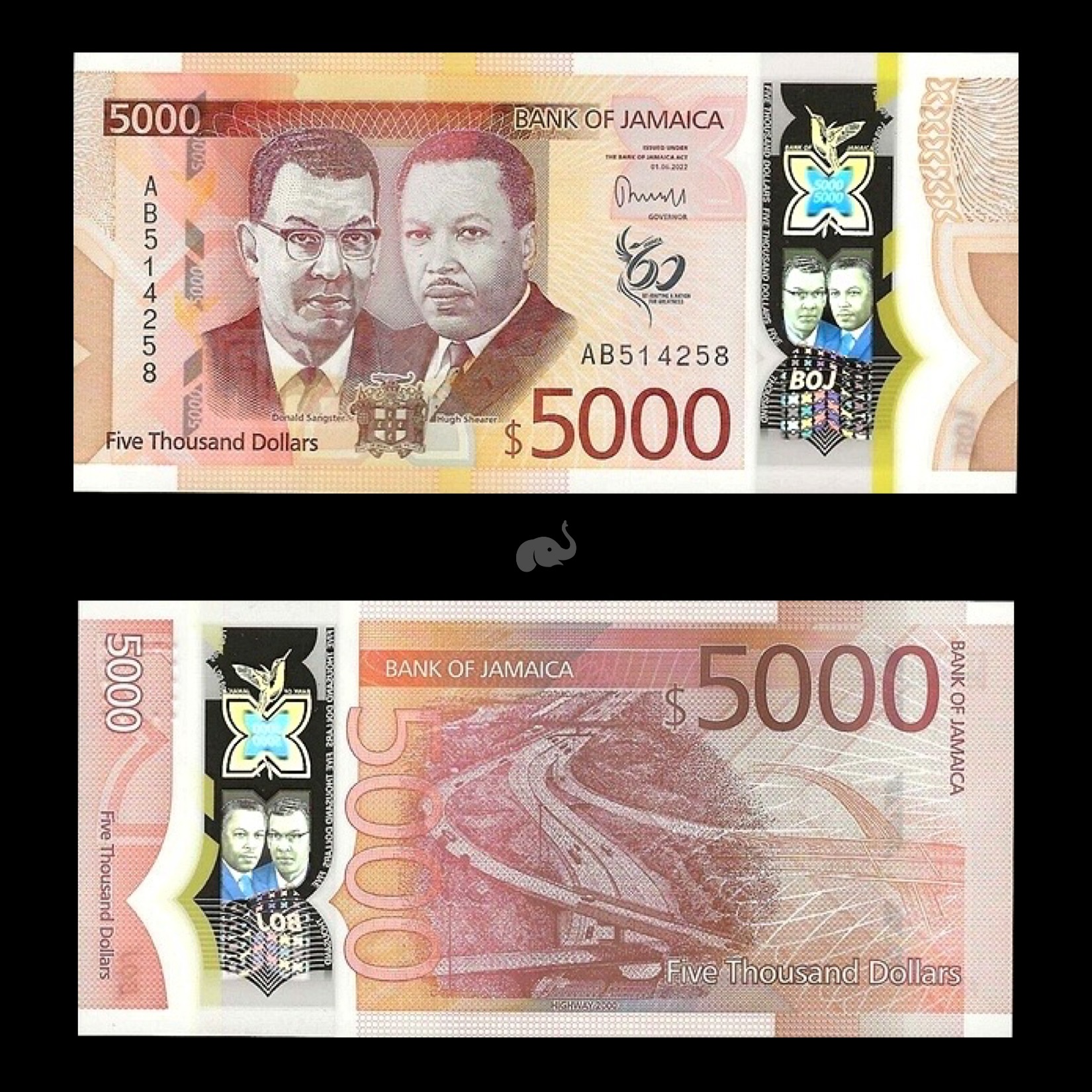 Jamaica 5000 Dollars 2022 PW101 Commemorative UNC