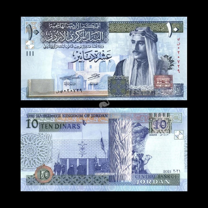 Jordan 10 Dinars 2021 P-36 UNC Bank Note