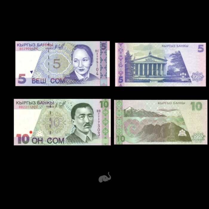 Kyrgyzstan 5 & 10 Som 1997 Set of 2 UNC Bank Notes
