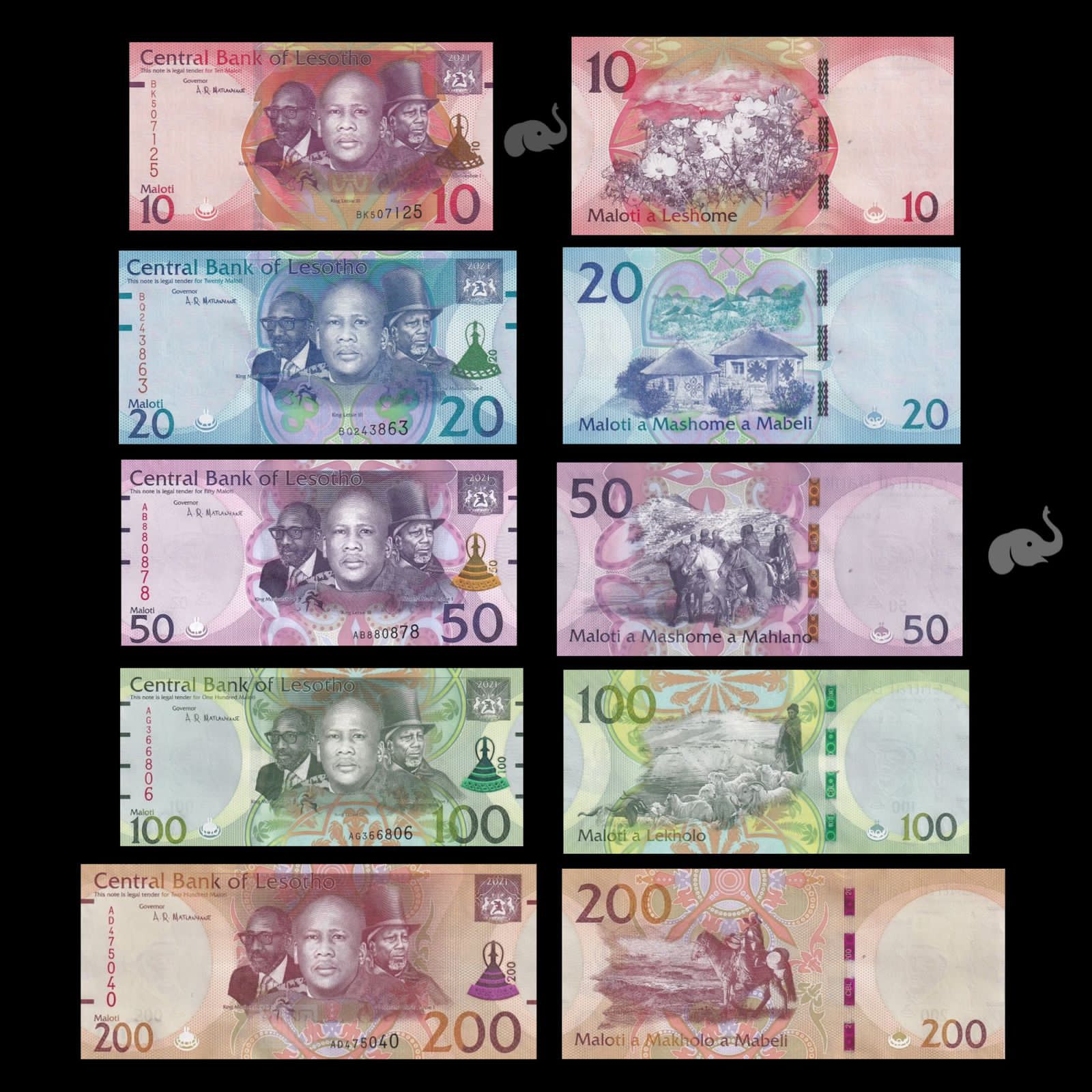 Lesotho 10 – 200 Maloti 2010-21 Year Set of 5 UNC Bank Notes