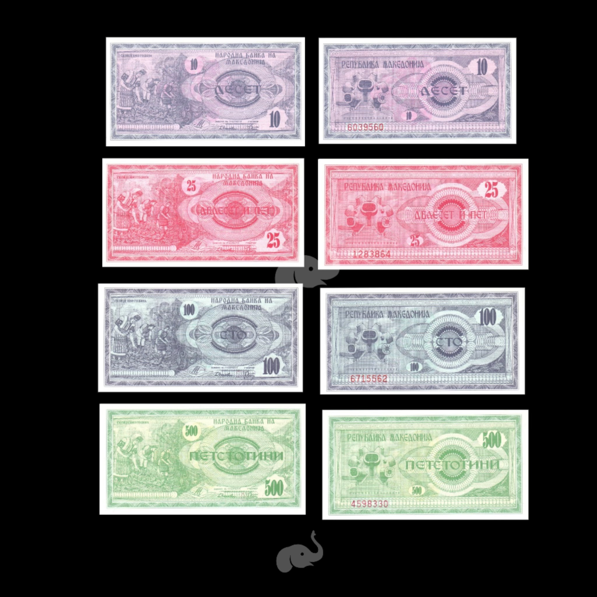 Macedonia 10-25, 100-500 Dinara 1992 UNC Set of 4 UNC