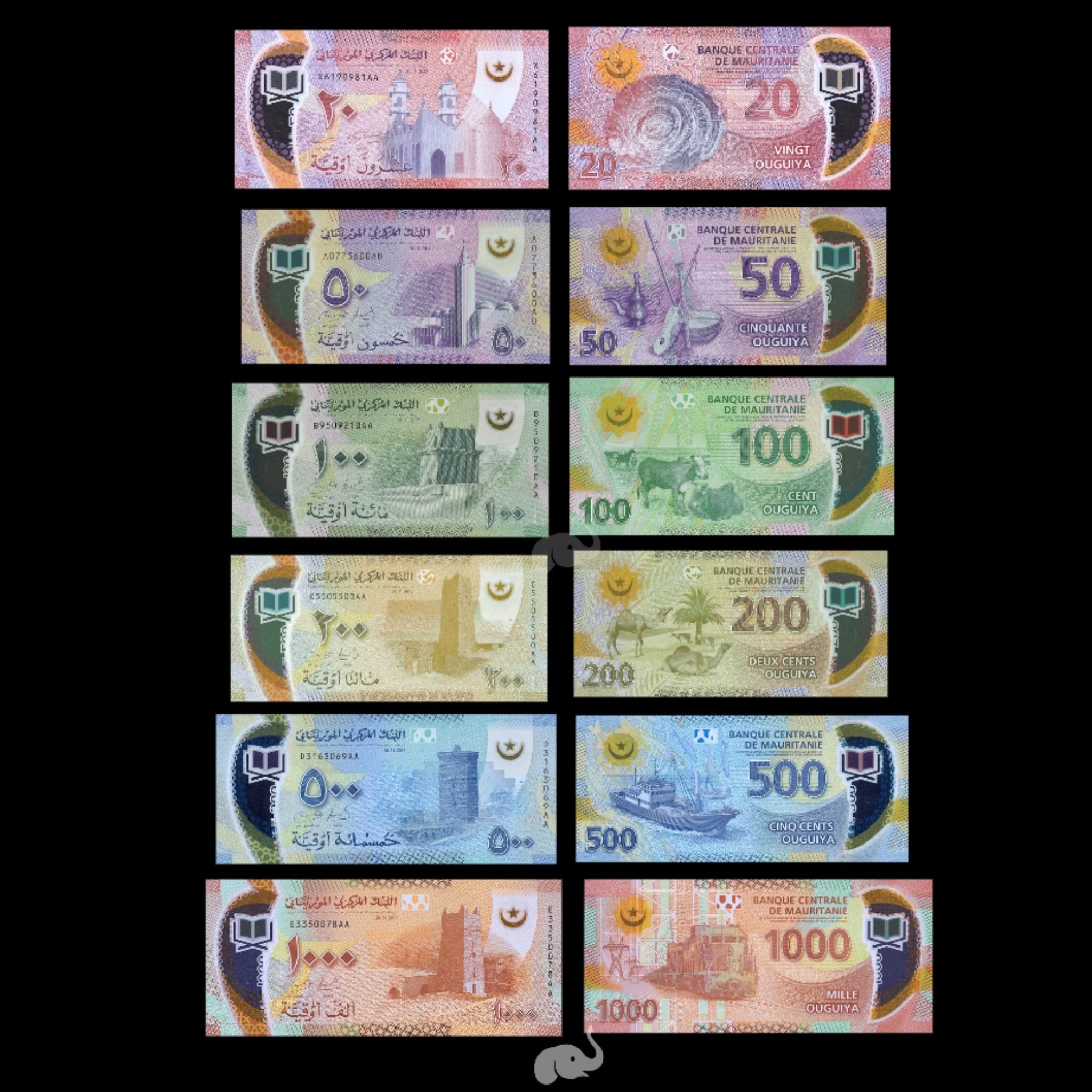 Mauritania 20 – 1.000 Ouguiya 2017-20 Set of 6 UNC Polymer Bank Notes