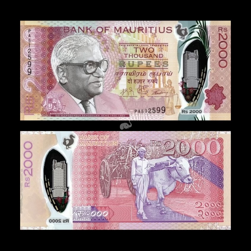 Mauritius 2000 Rupees 2018 P-W67 XF polymer Note