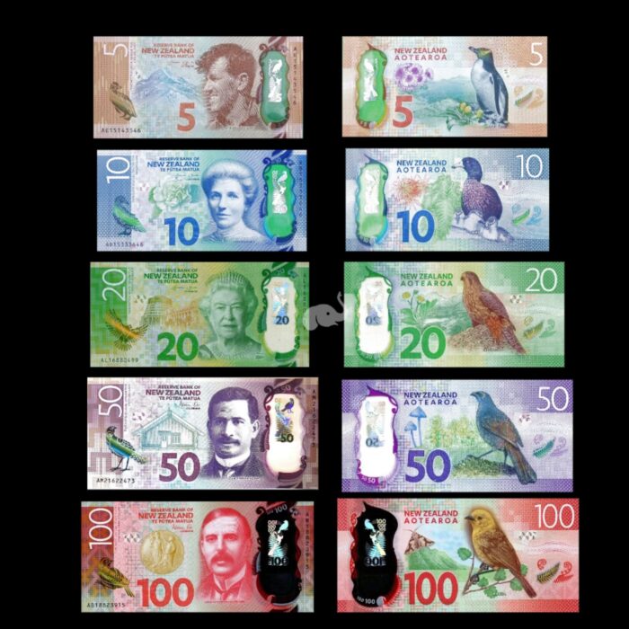 New Zealand 5 – 100 Dollars 2015-21 UNC Polymer Bank note
