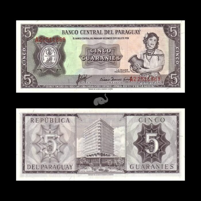 Paraguay 5 Guaraníes 1963 P-195b UNC Bank Note