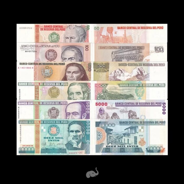 Peru 50 – 10000 Intis 1985-99 set of 6 UNC Bank Notes