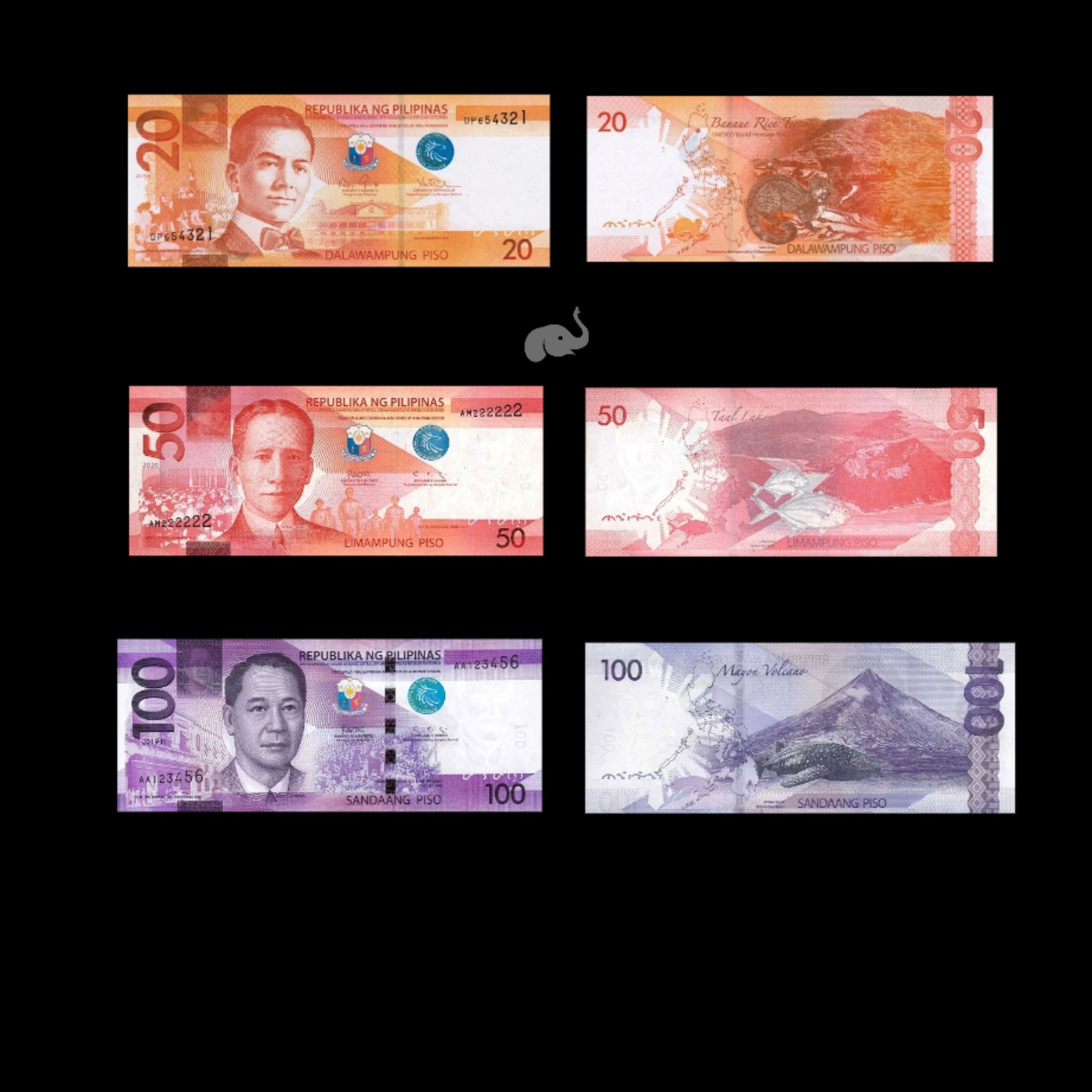 Philippines 20 50 100 Pesos 2014-19 UNC set of 3