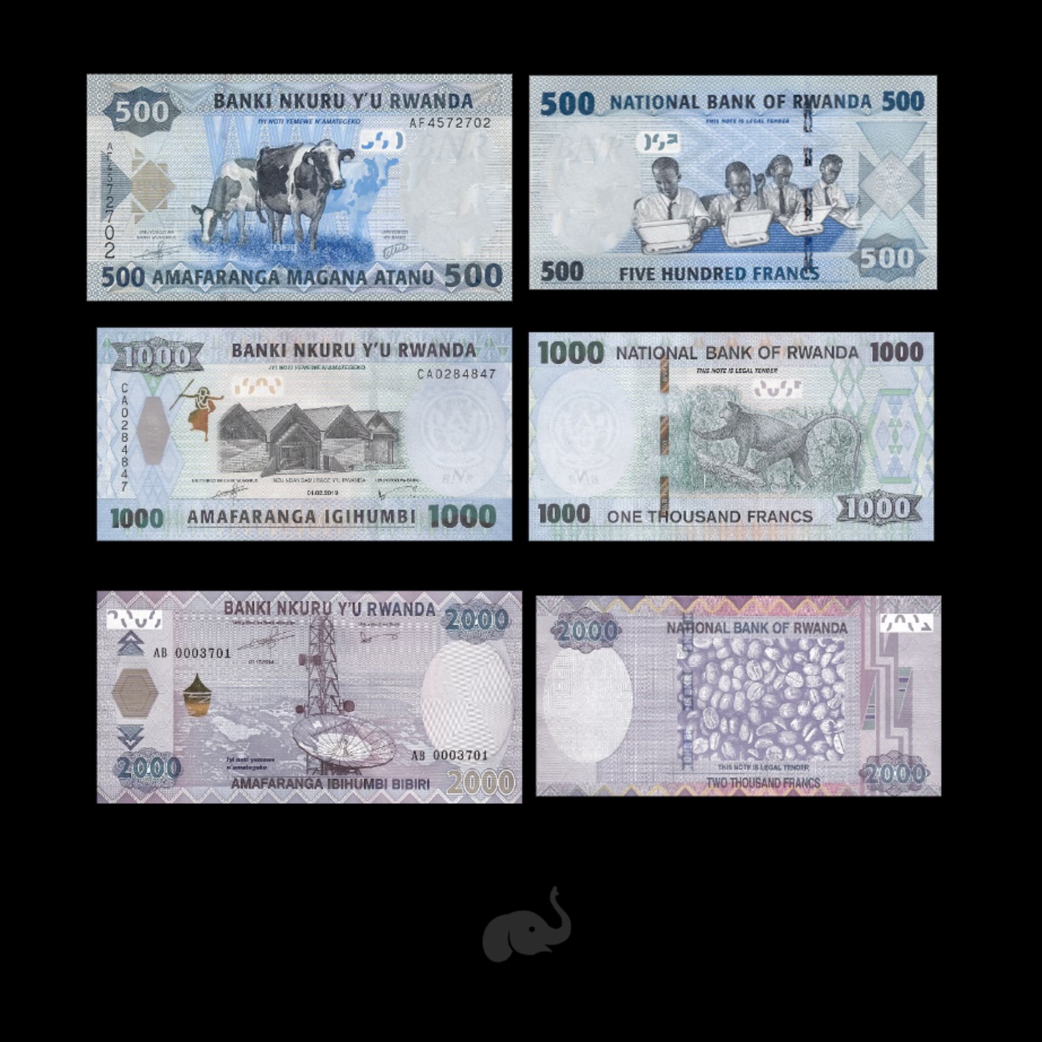Rwanda 500-2000 Francs 2013-19 UNC Set of 3 Notes