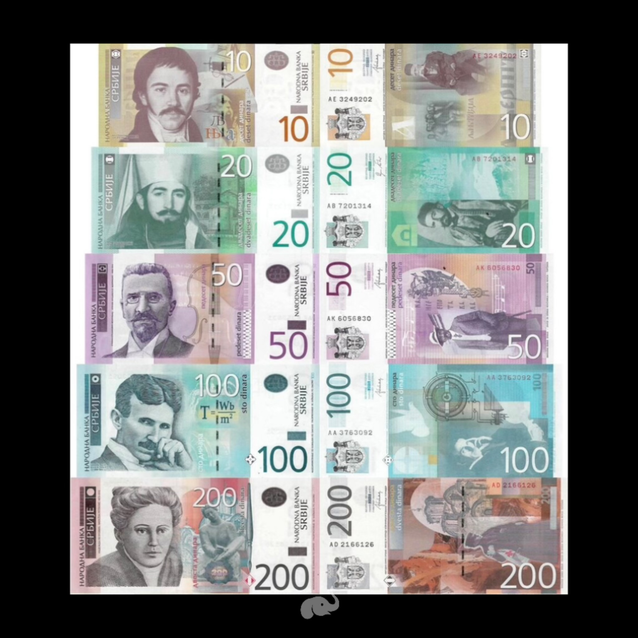 Serbia 10 – 200 dinara 2005-13 Set of 5 UNC