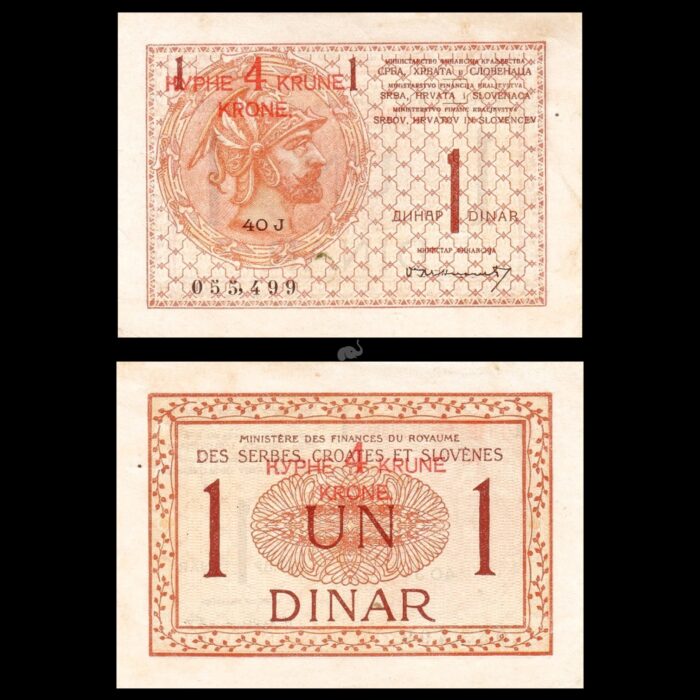 Serbia 4 Krune Overprint on 1 Dinar 1919 P15 UNC