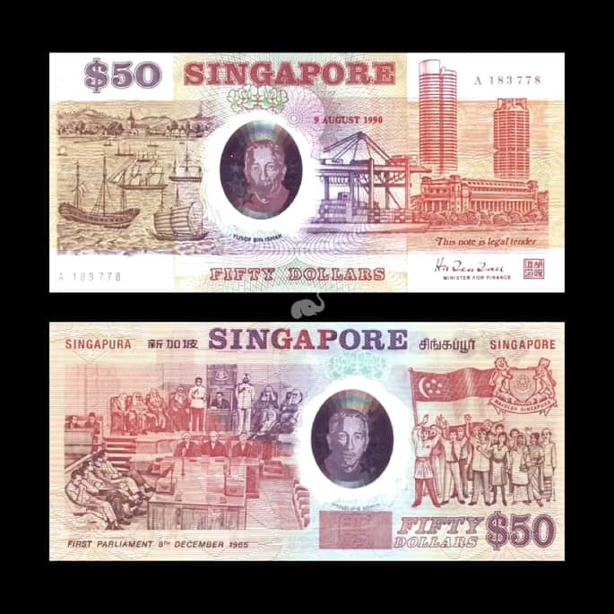 Singapore 50 Dollar 1990 P-30 Commemorative Polymer UNC with folder