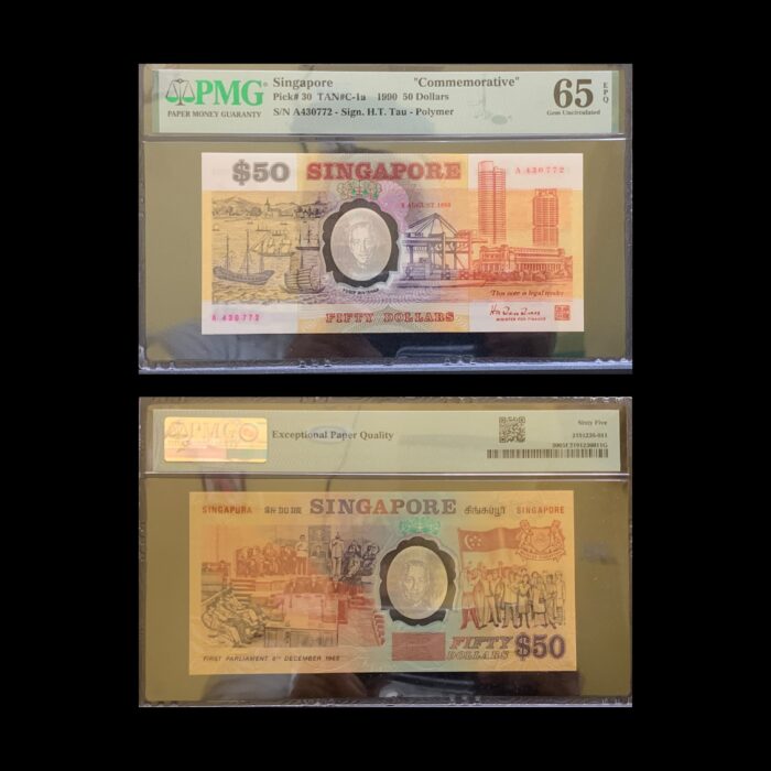 Singapore 50 Dollars 1990 P-30 Commemorative Polymer UNC PMG 65 EPQ Grade Rare