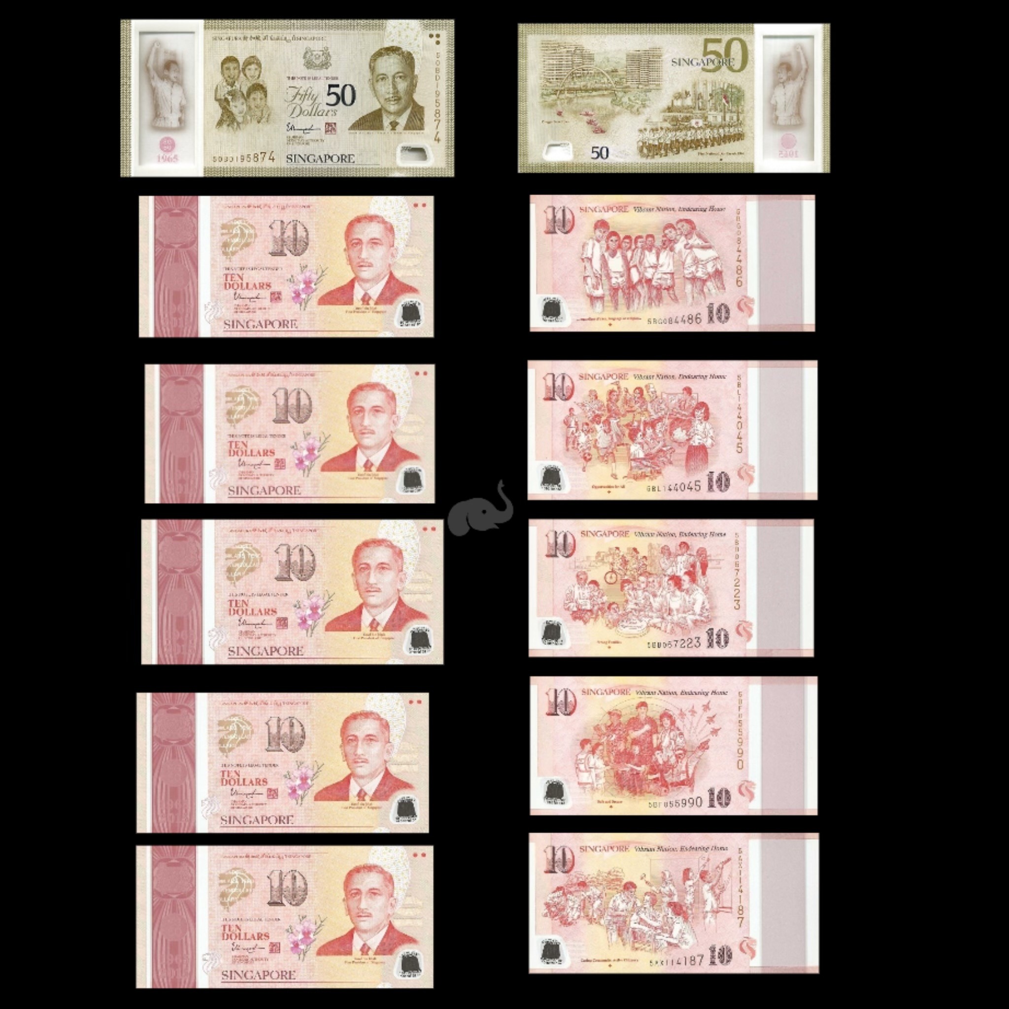 Singapore 50 + five 10 Dollars 2015 Commemorative Polymer UNC Bank Notes