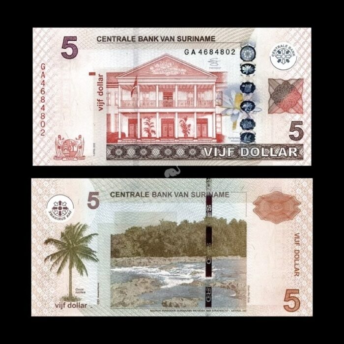 Suriname 5 Dollar 2012 P-162b UNC Bank Note